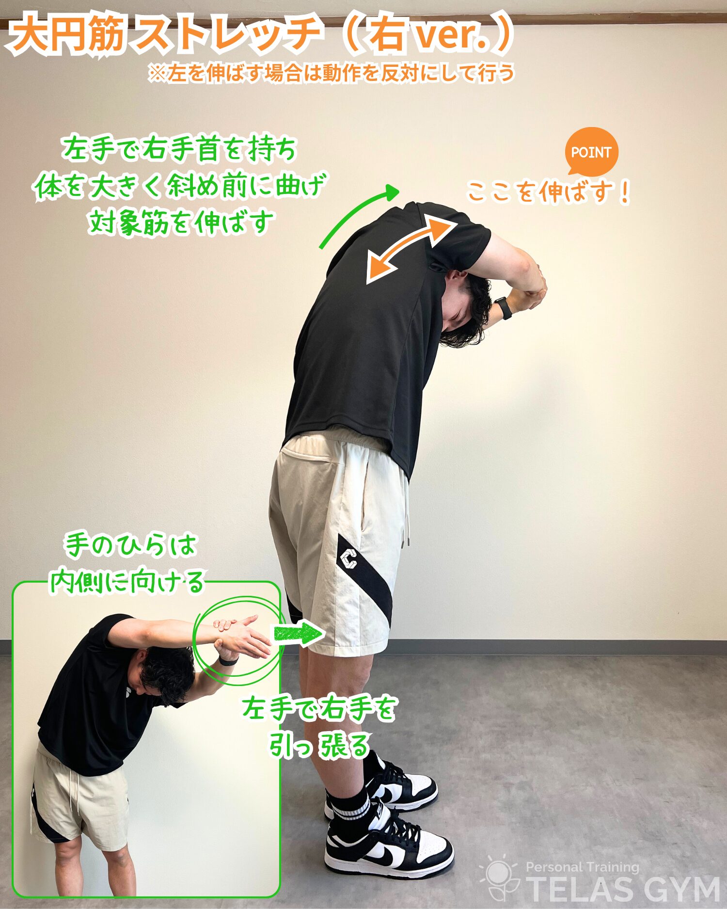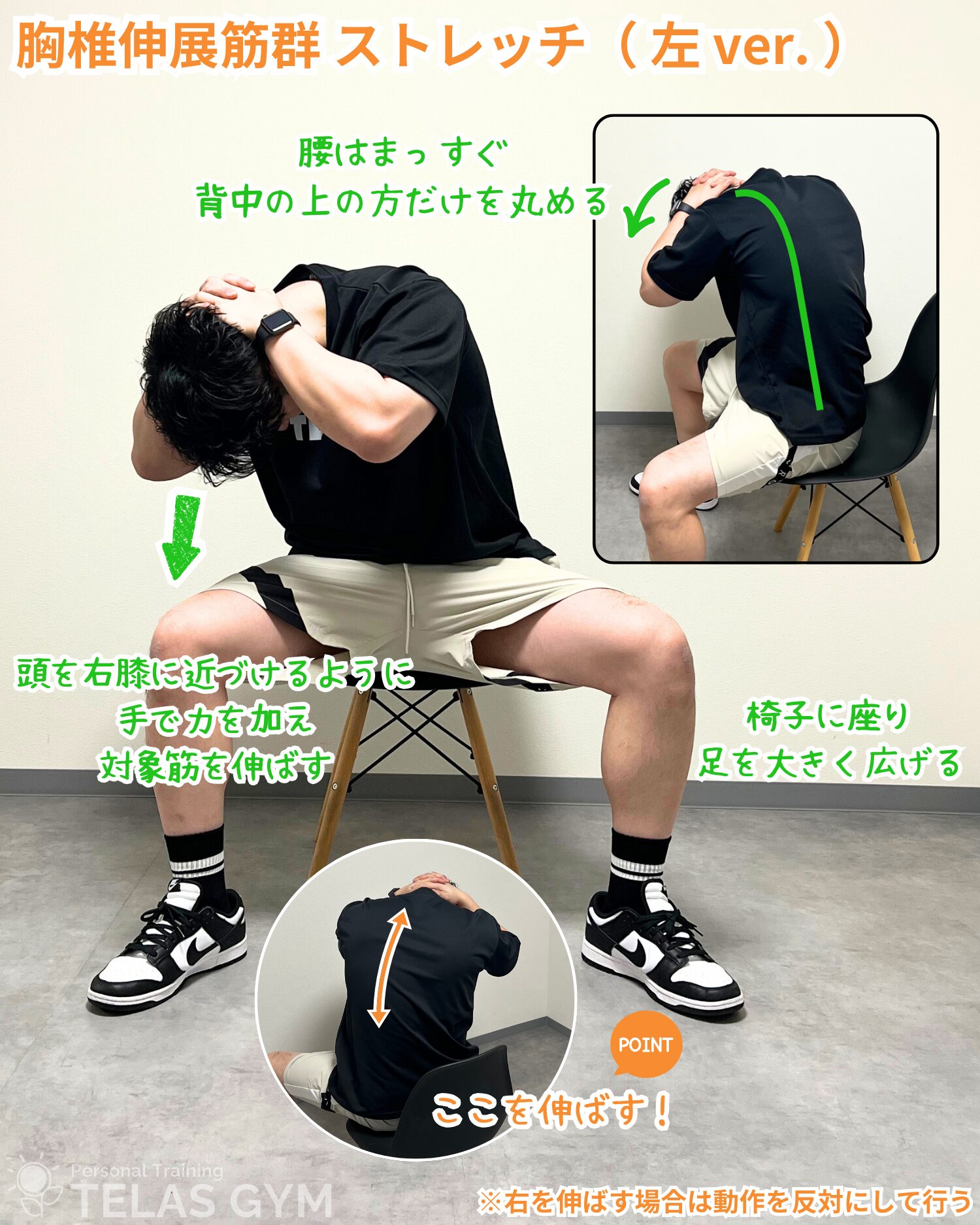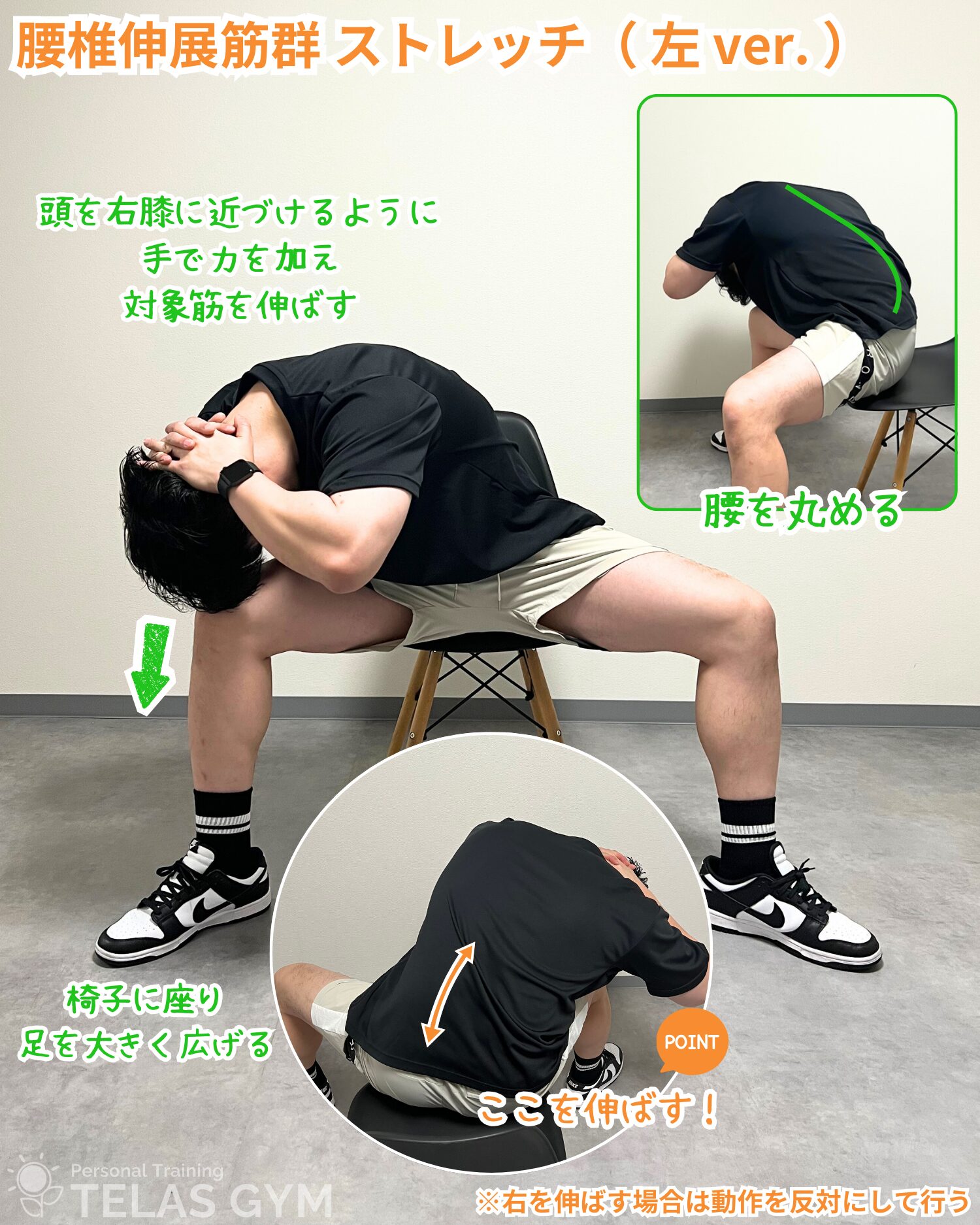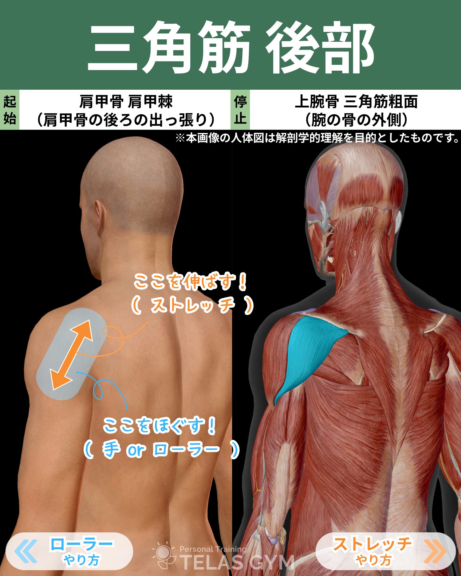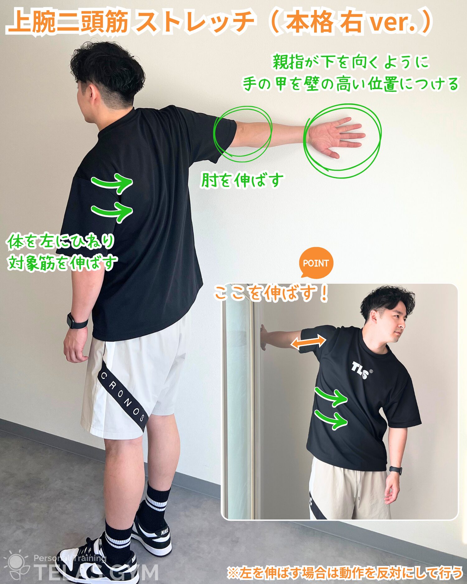 ※テラスジムでトレーニング前に行うストレッチは、対象筋のトレーニング効率を最大化するため、拮抗筋や邪魔な筋肉をしっかり緩めることが目的であるため、その限りではありません。