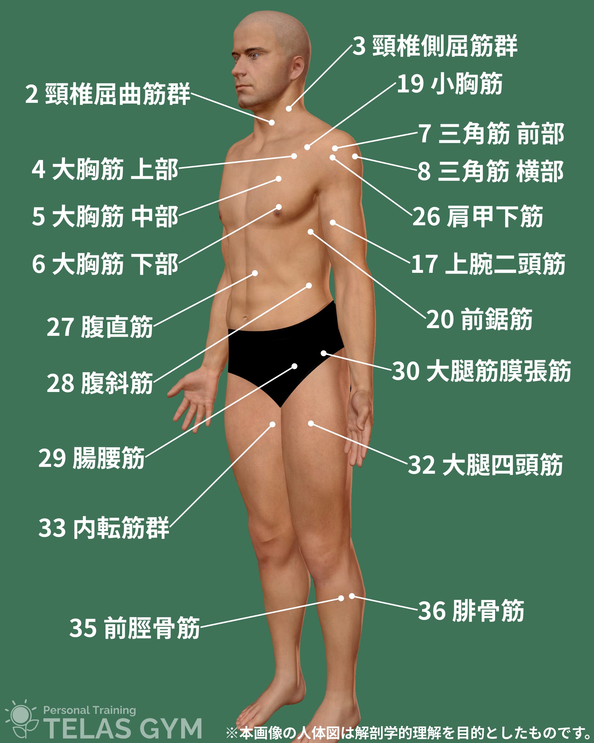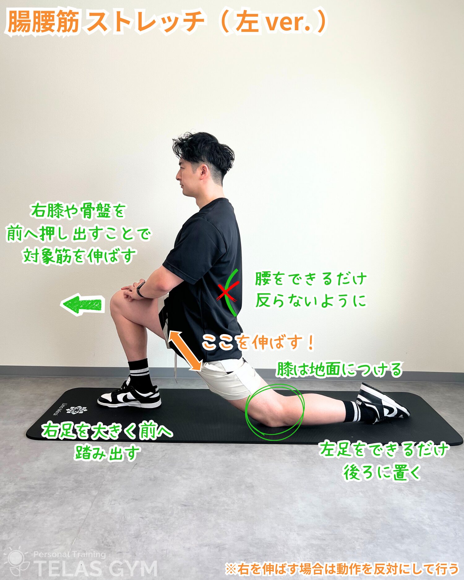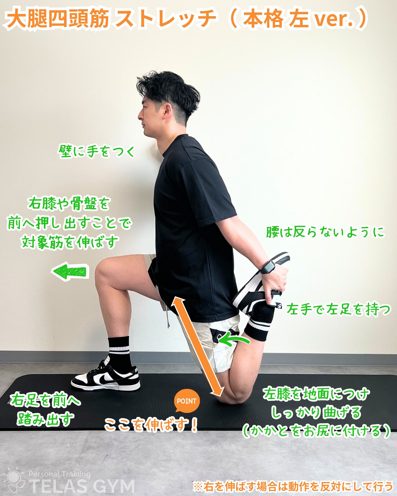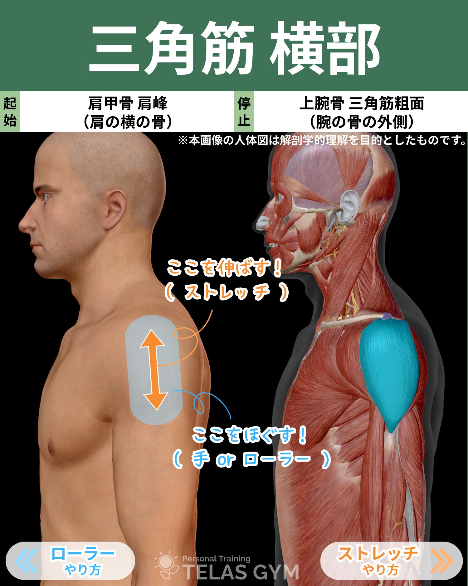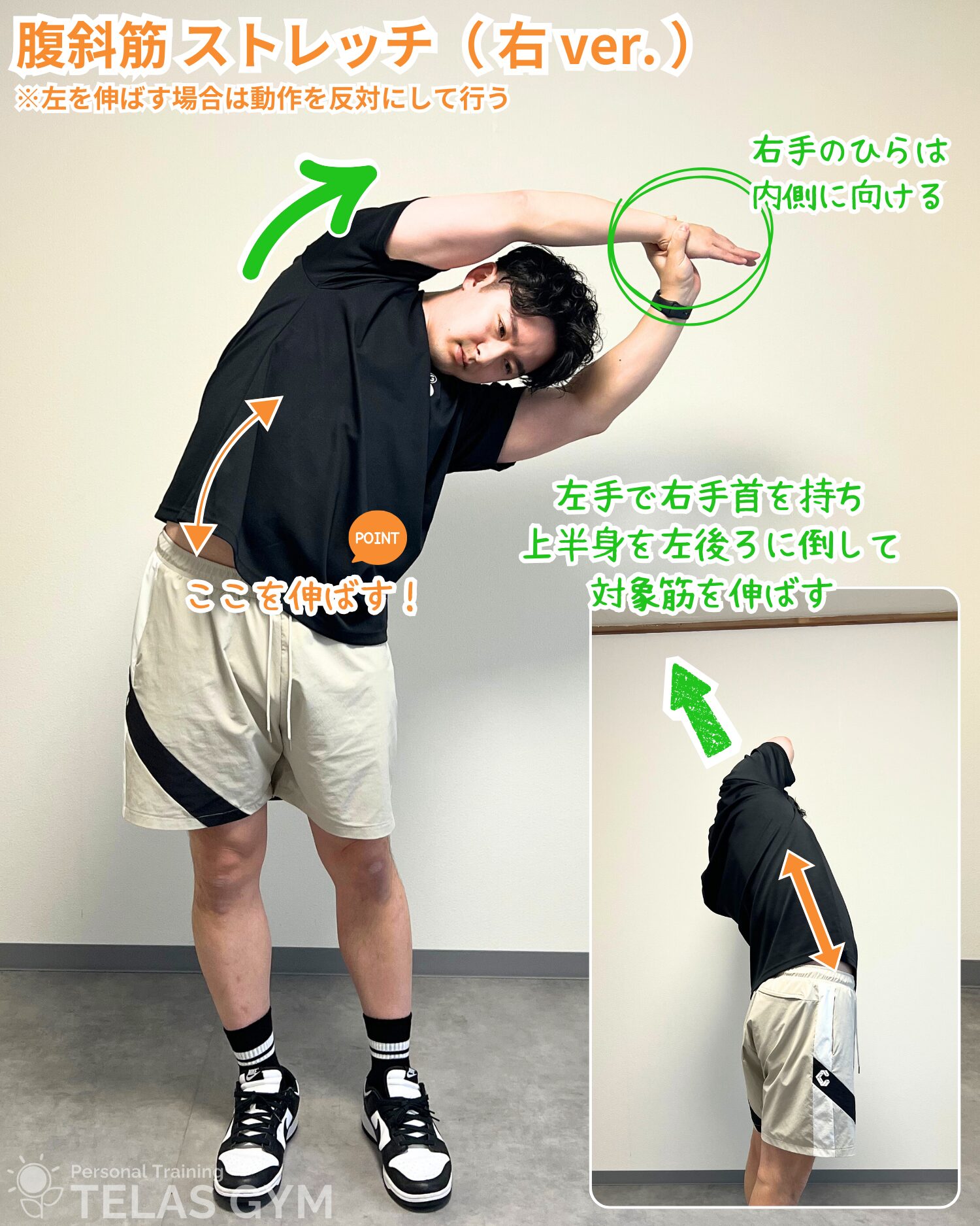 ※テラスジムでトレーニング前に行うストレッチは、対象筋のトレーニング効率を最大化するため、拮抗筋や邪魔な筋肉をしっかり緩めることが目的であるため、その限りではありません。