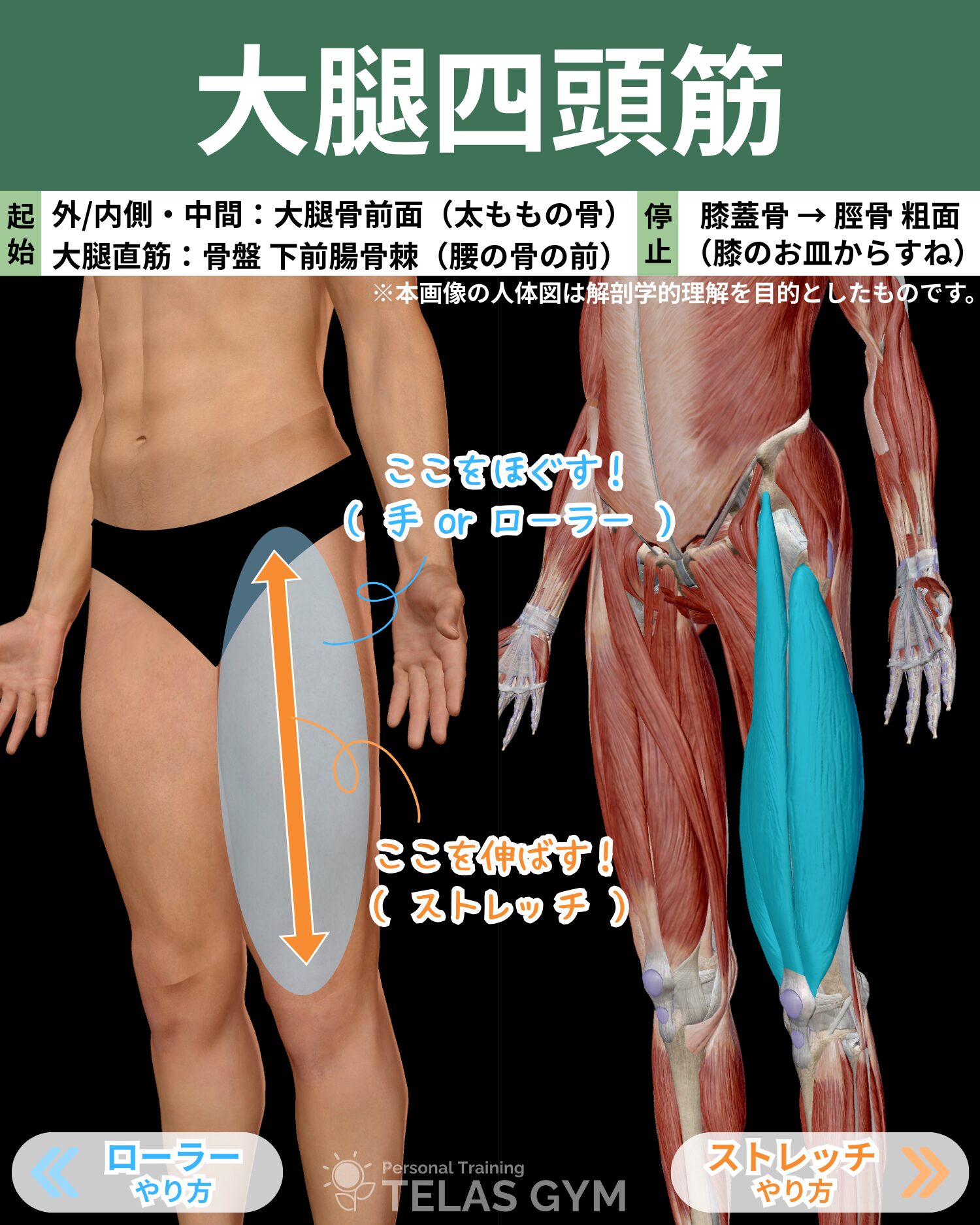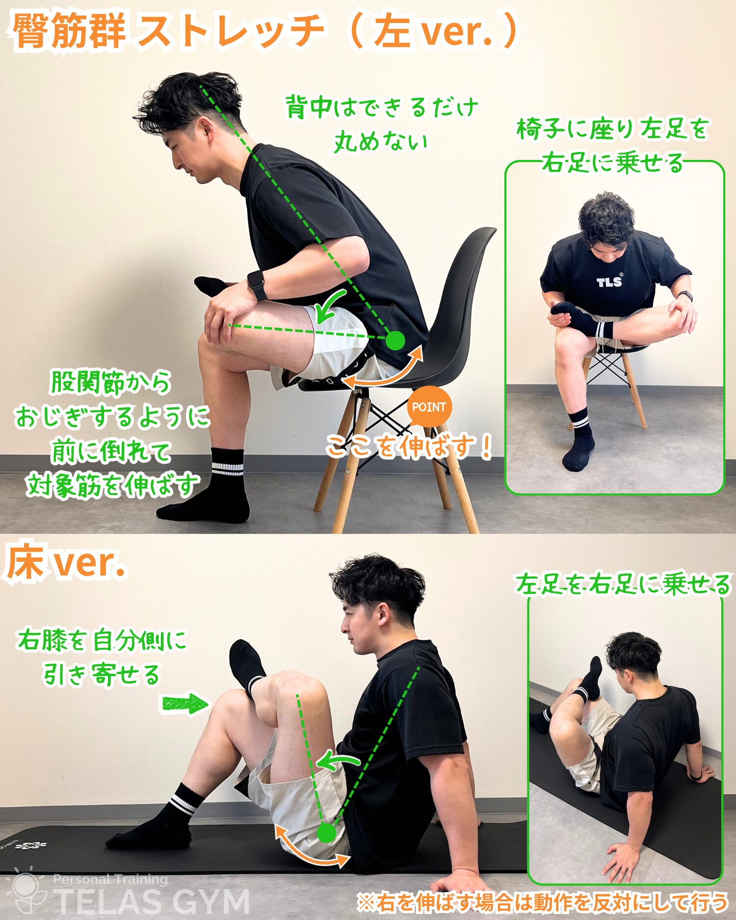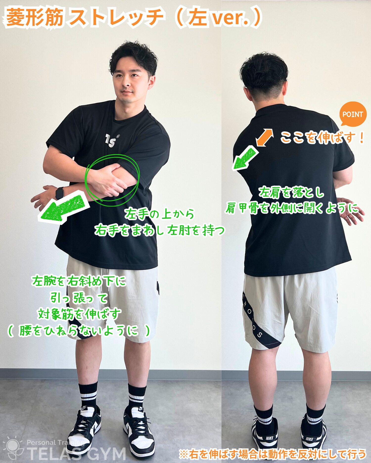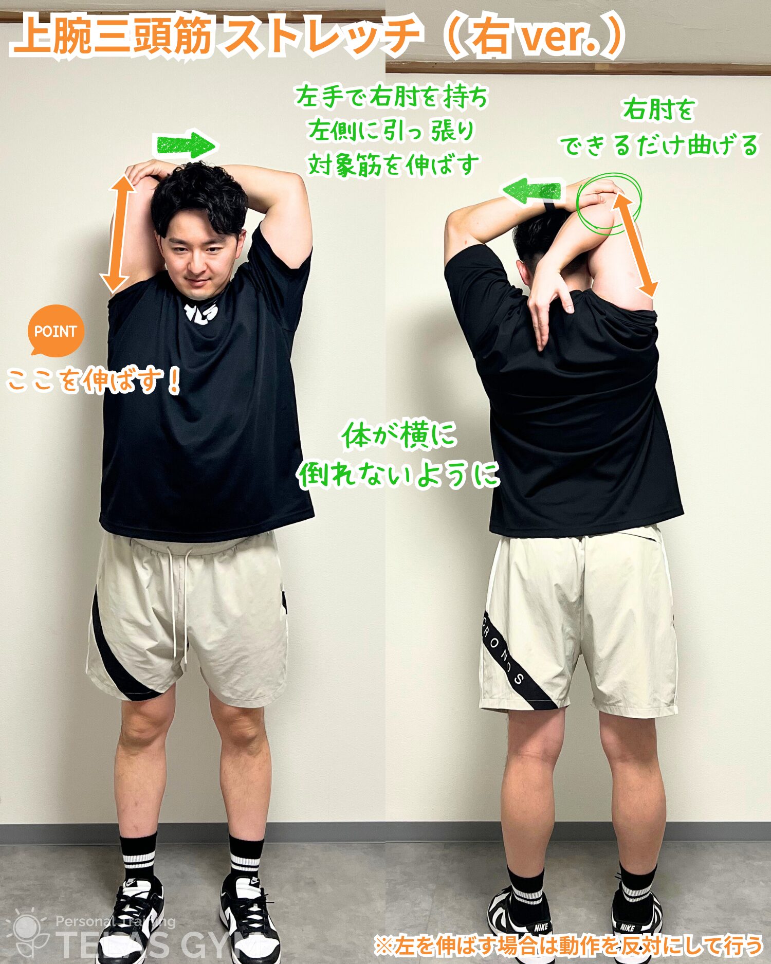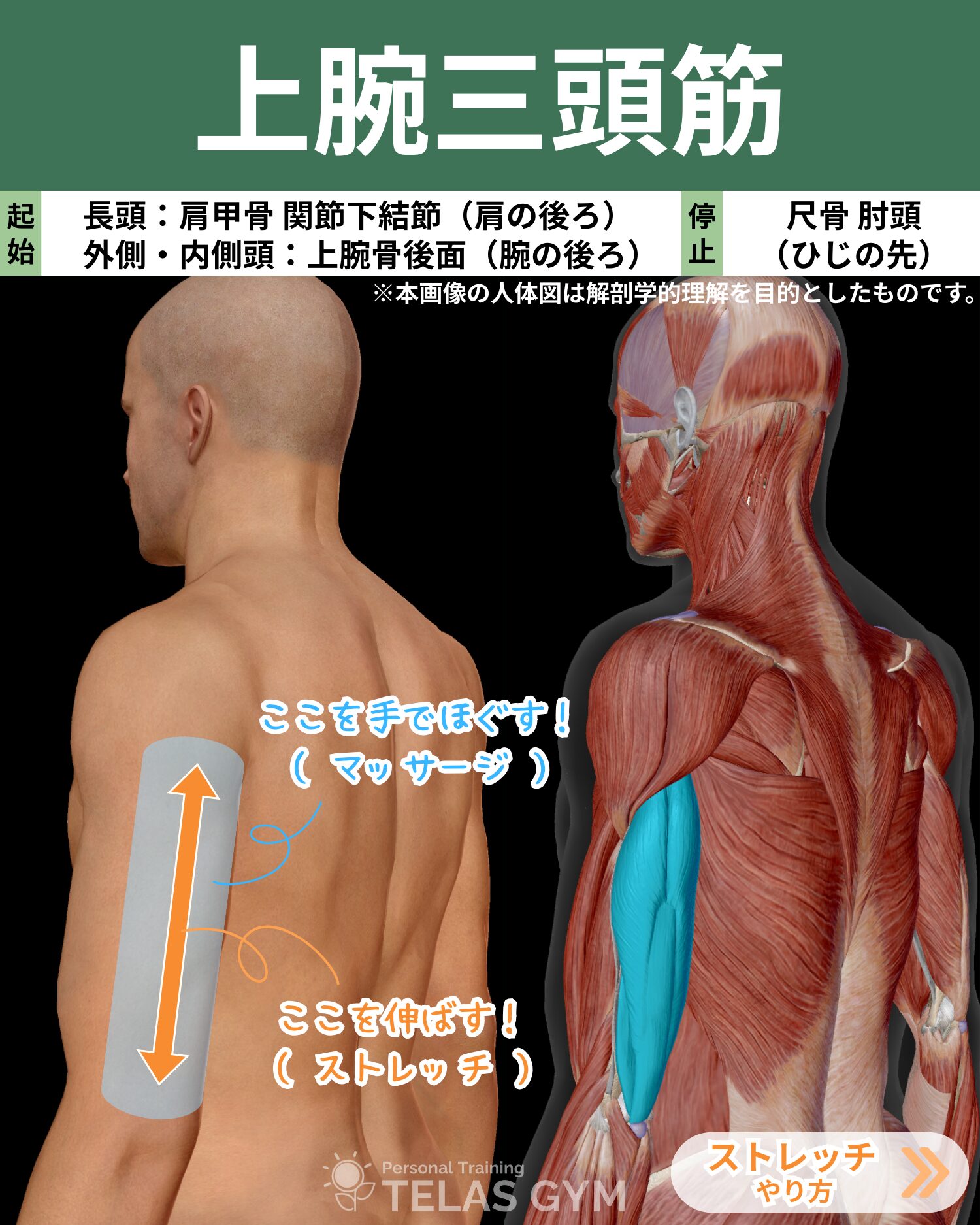 ※テラスジムでトレーニング前に行うストレッチは、対象筋のトレーニング効率を最大化するため、拮抗筋や邪魔な筋肉をしっかり緩めることが目的であるため、その限りではありません。