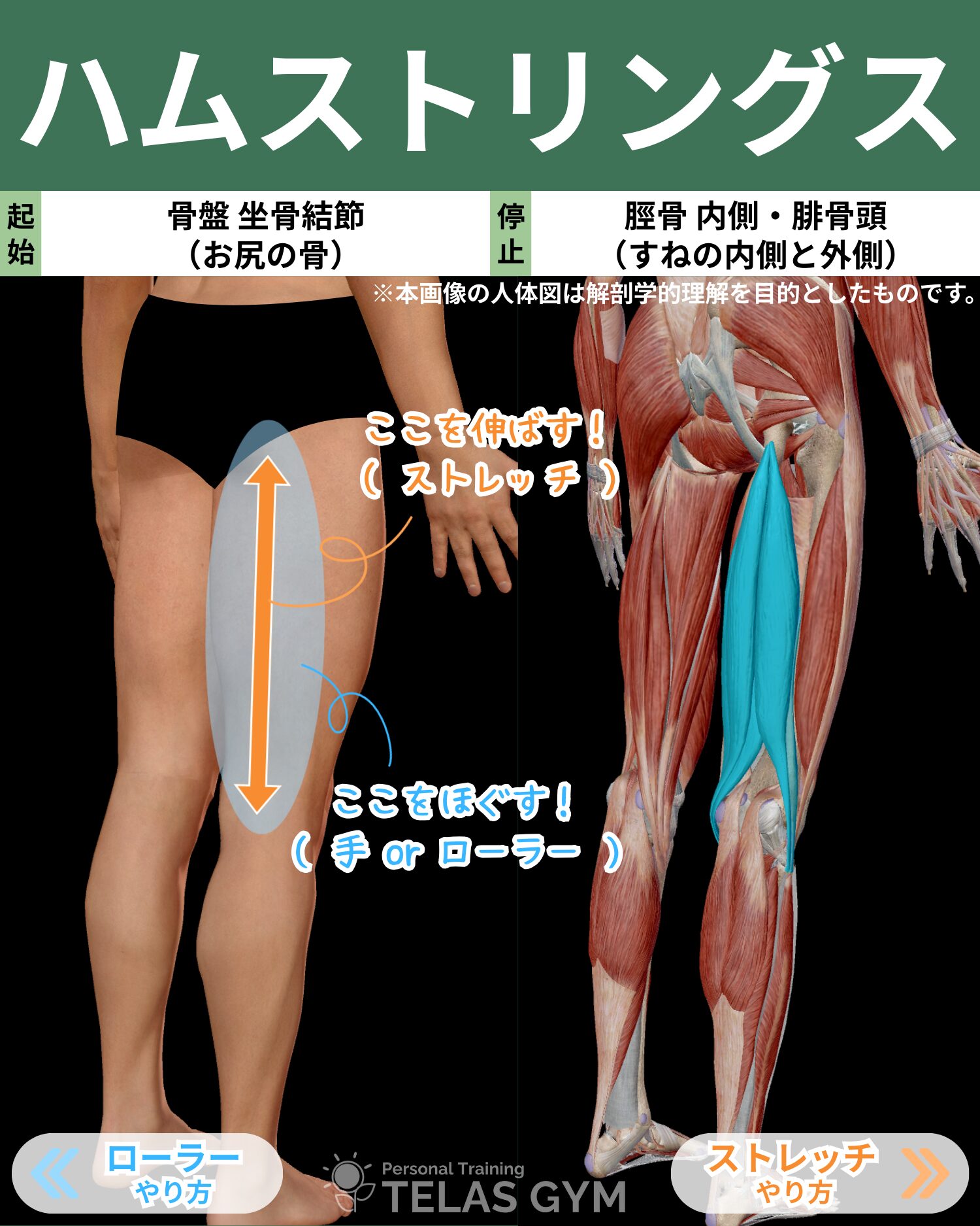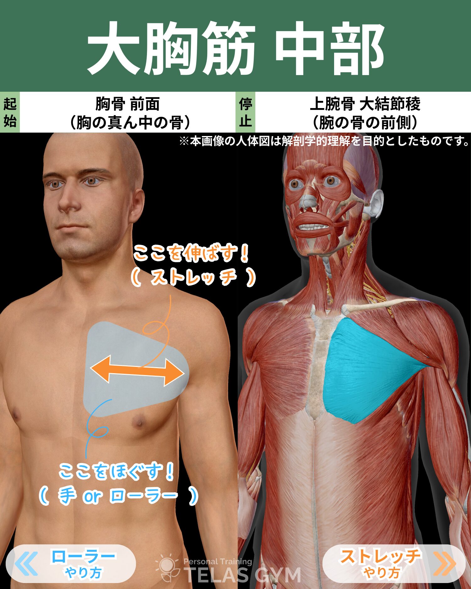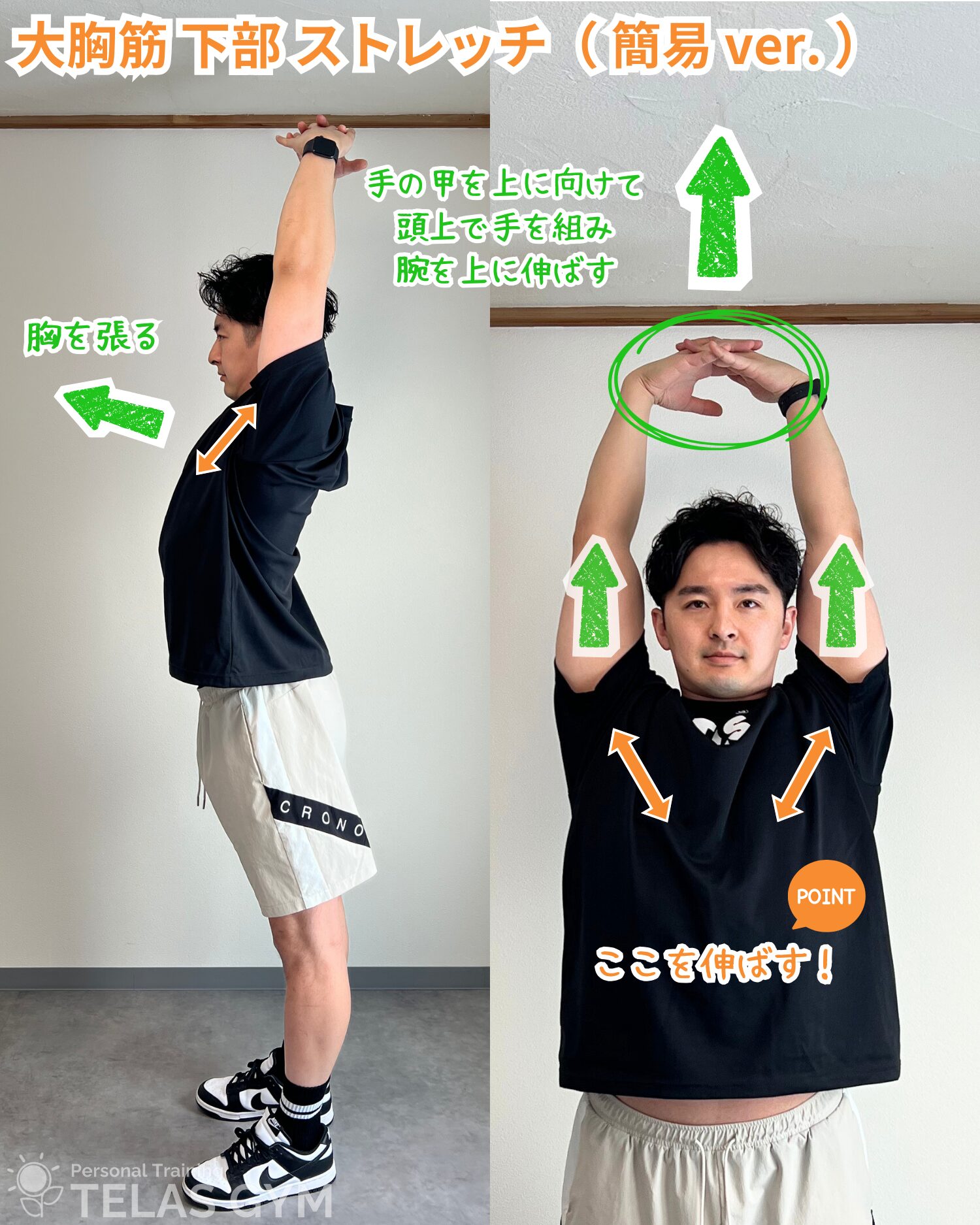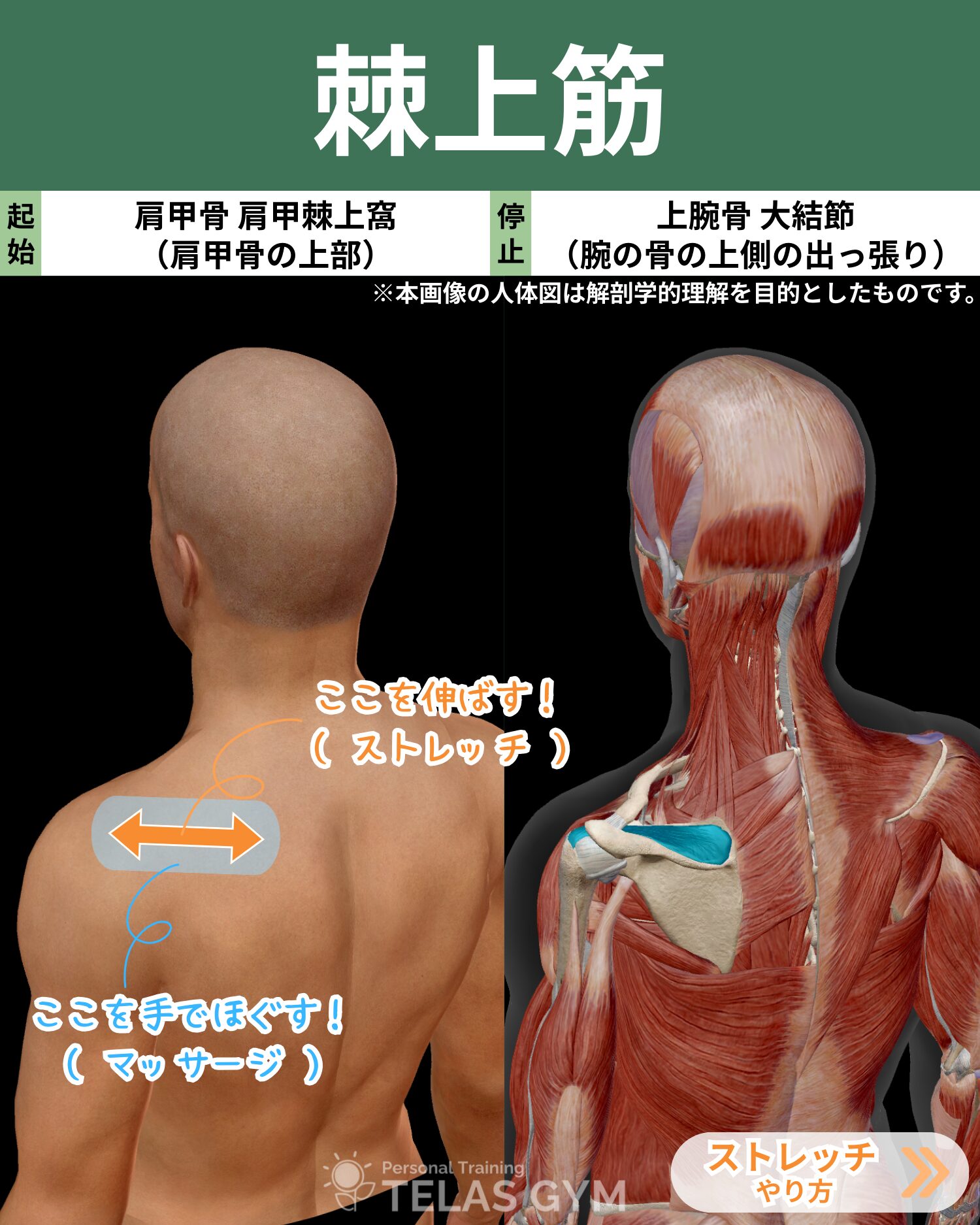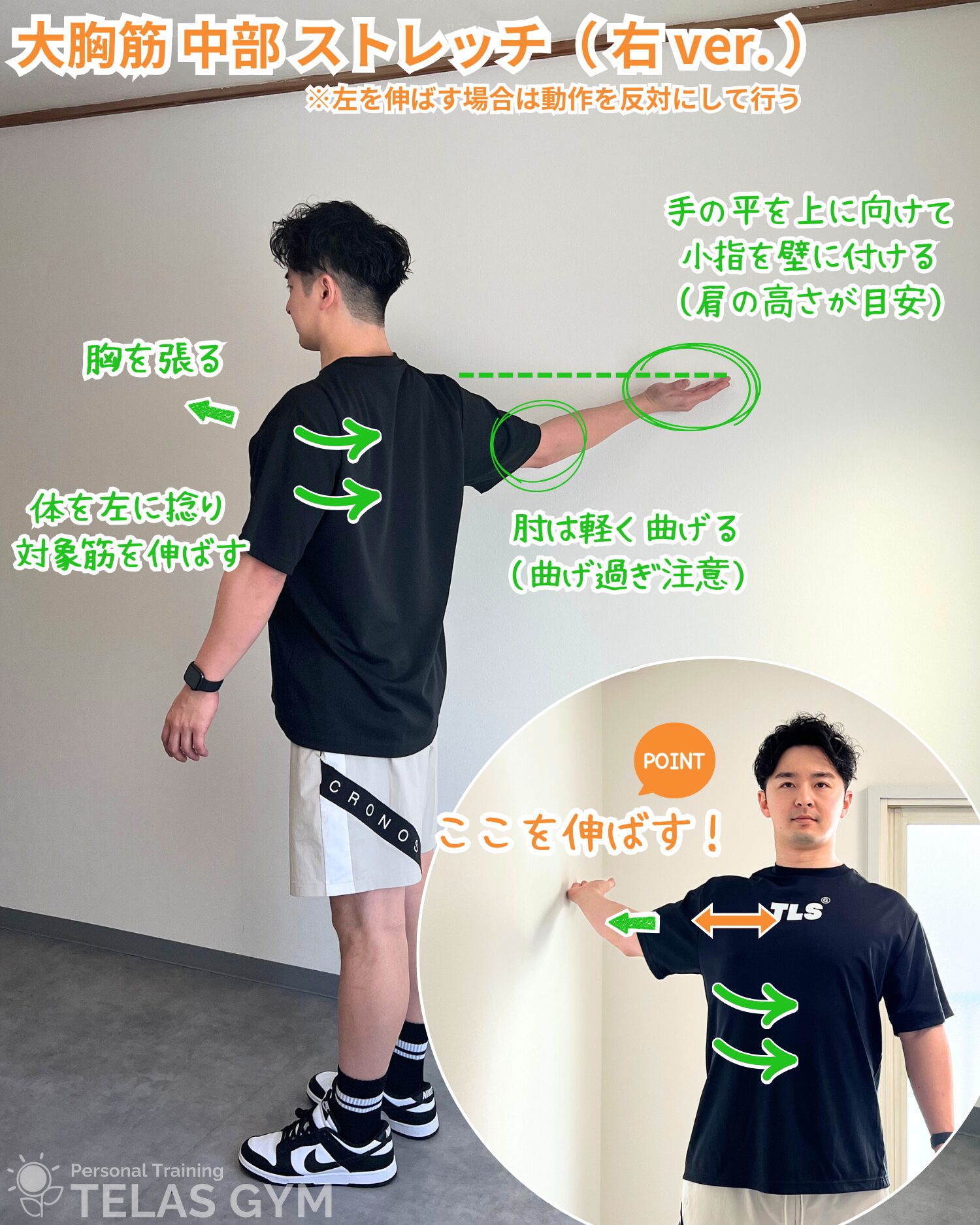 ※テラスジムでトレーニング前に行うストレッチは、対象筋のトレーニング効率を最大化するため、拮抗筋や邪魔な筋肉をしっかり緩めることが目的であるため、その限りではありません。