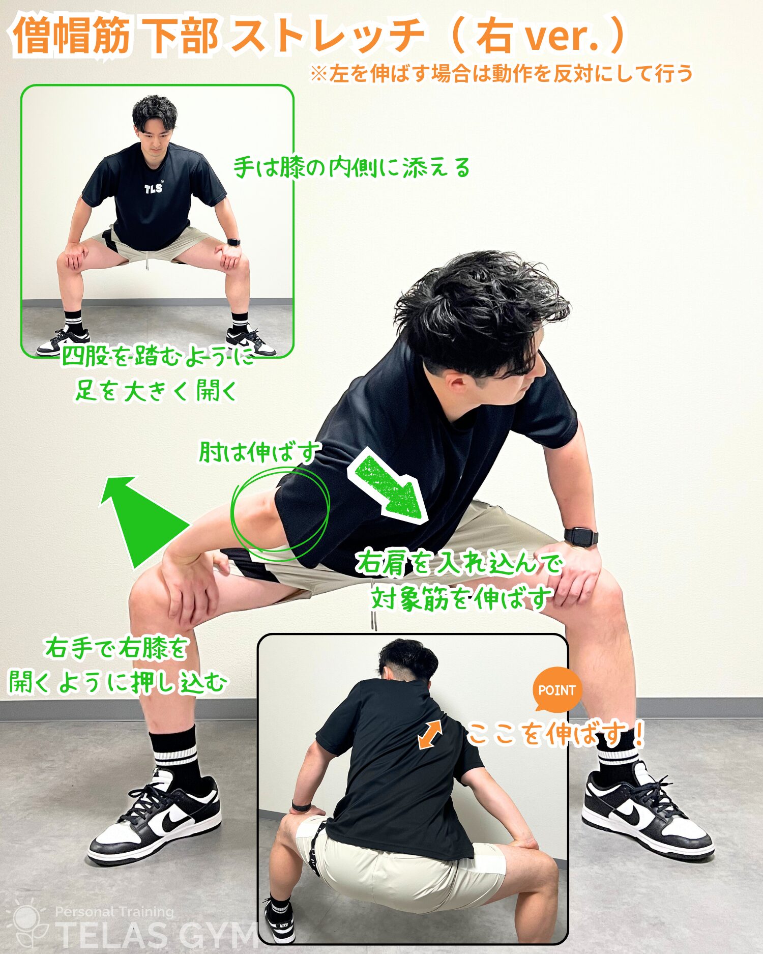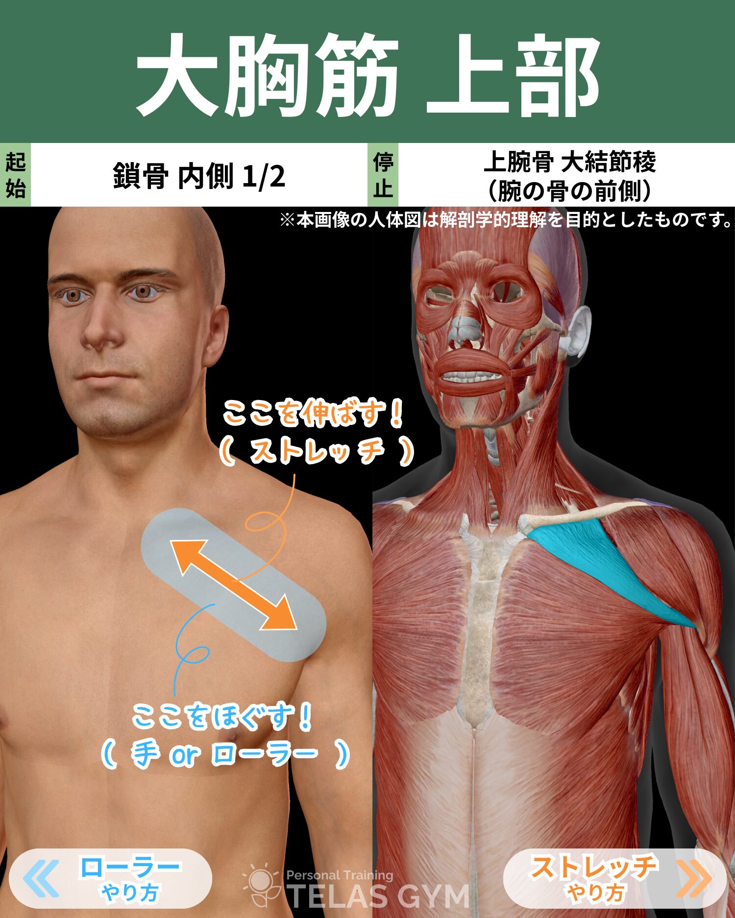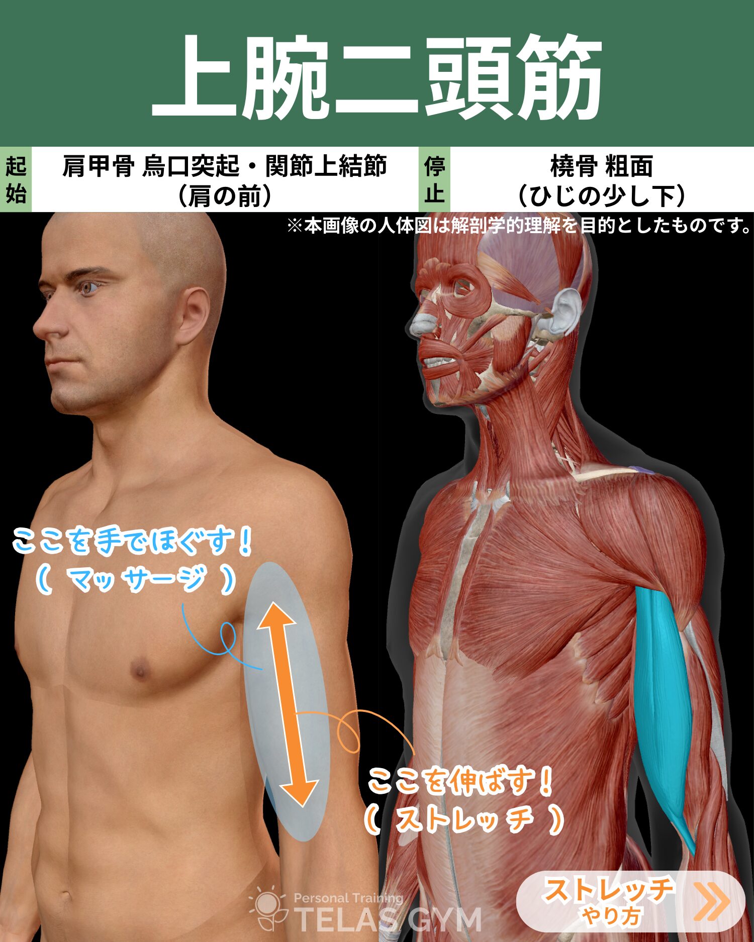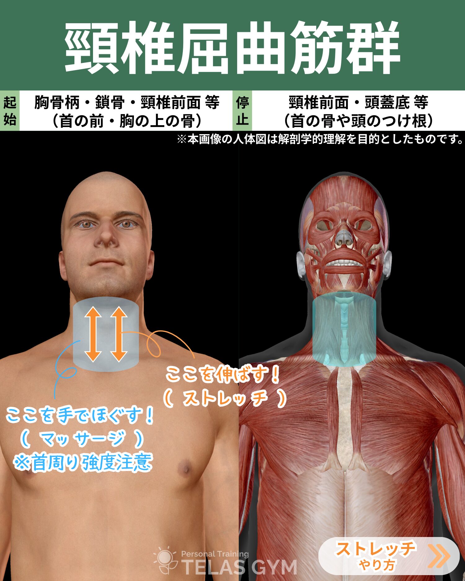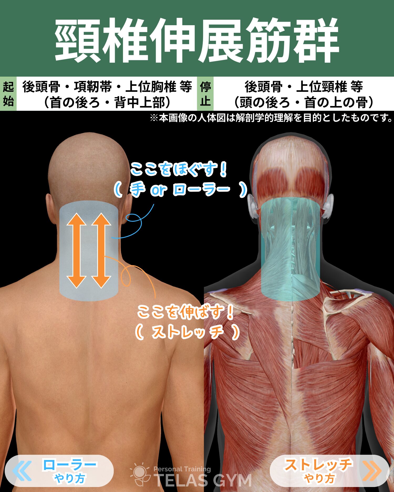 ※テラスジムでトレーニング前に行うストレッチは、対象筋のトレーニング効率を最大化するため、拮抗筋や邪魔な筋肉をしっかり緩めることが目的であるため、その限りではありません。