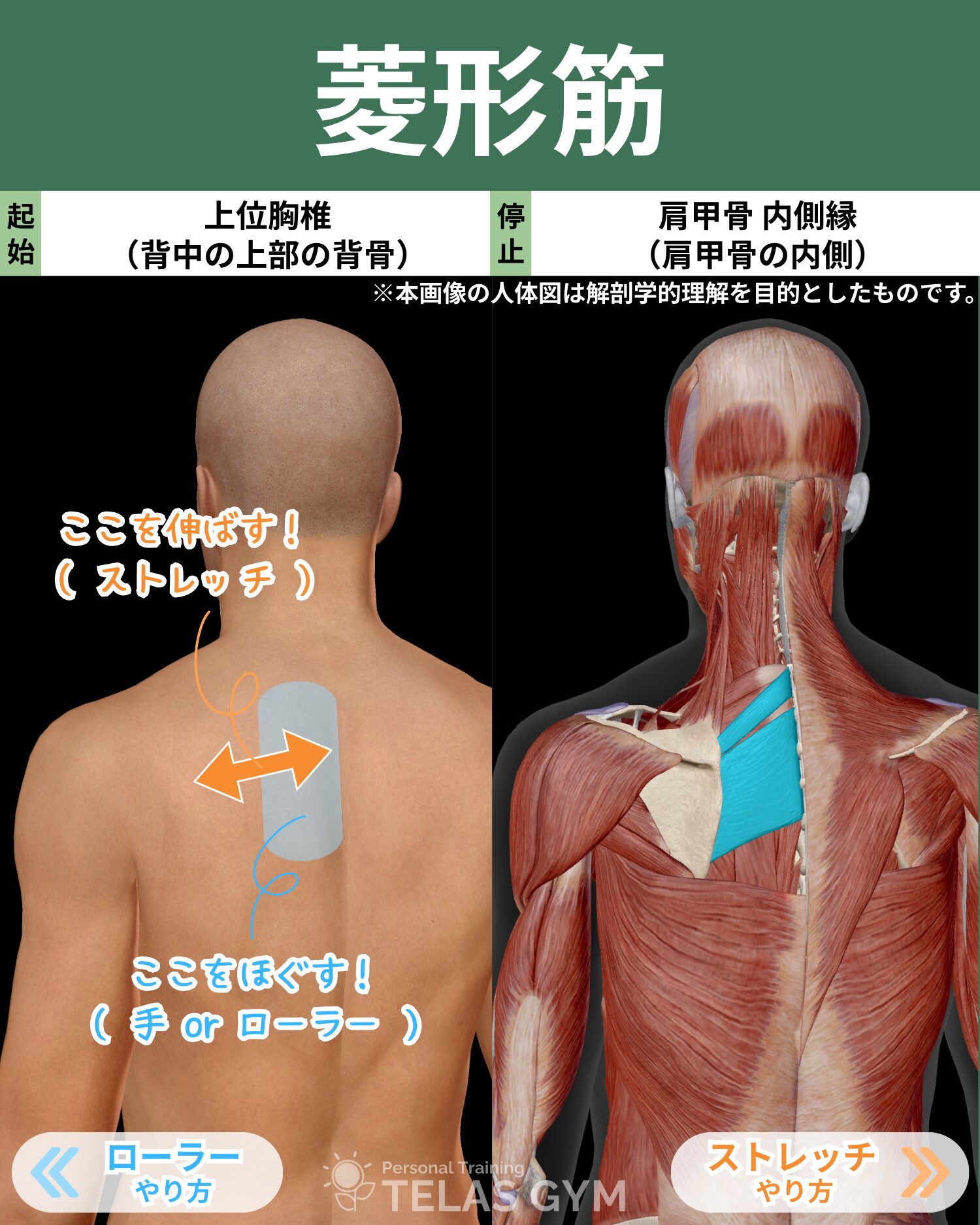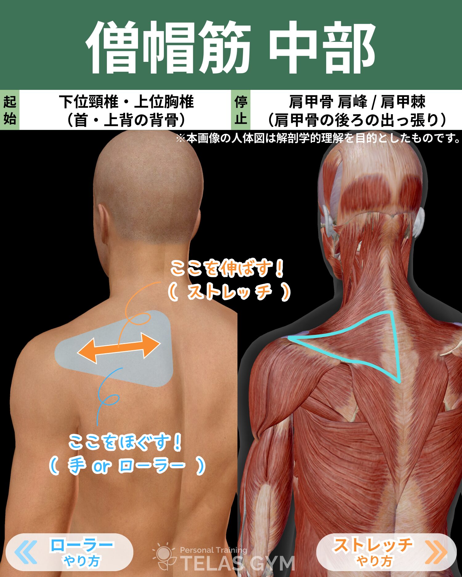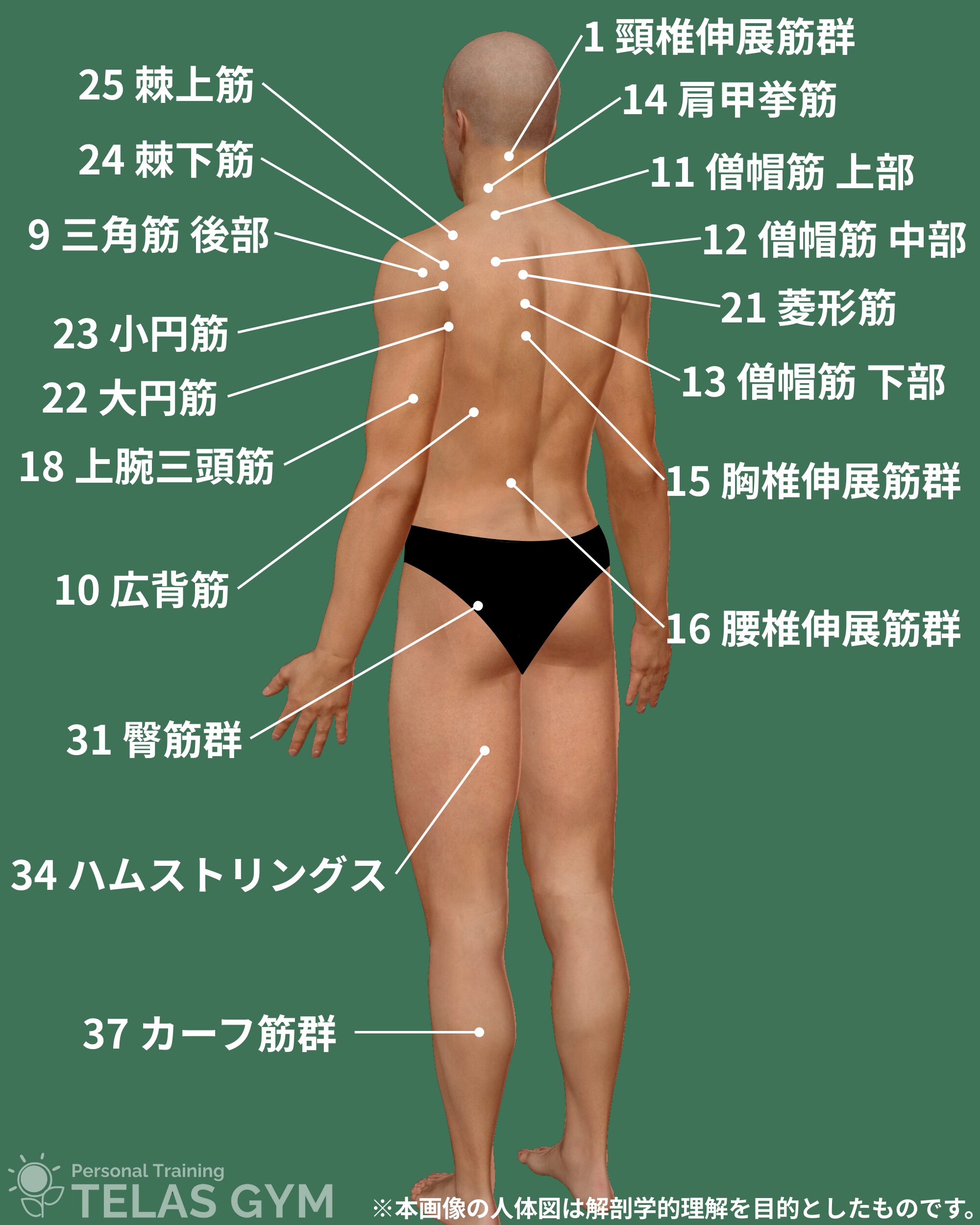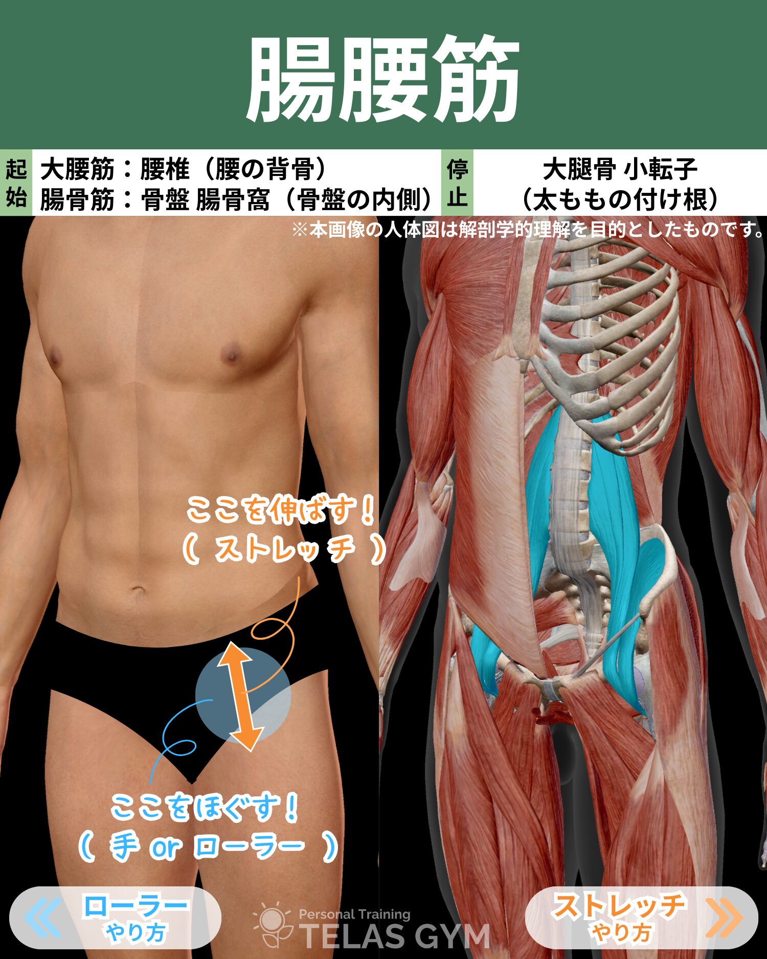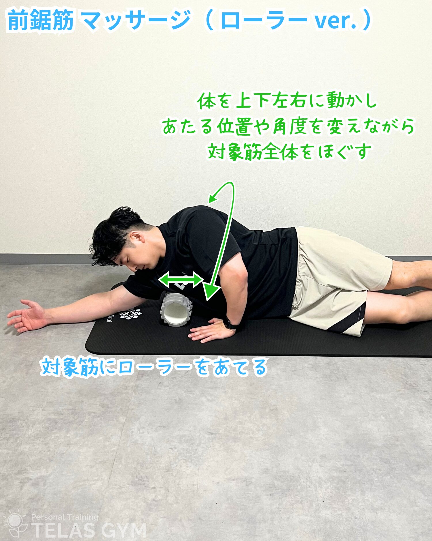 ※テラスジムでトレーニング前に行うストレッチは、対象筋のトレーニング効率を最大化するため、拮抗筋や邪魔な筋肉をしっかり緩めることが目的であるため、その限りではありません。